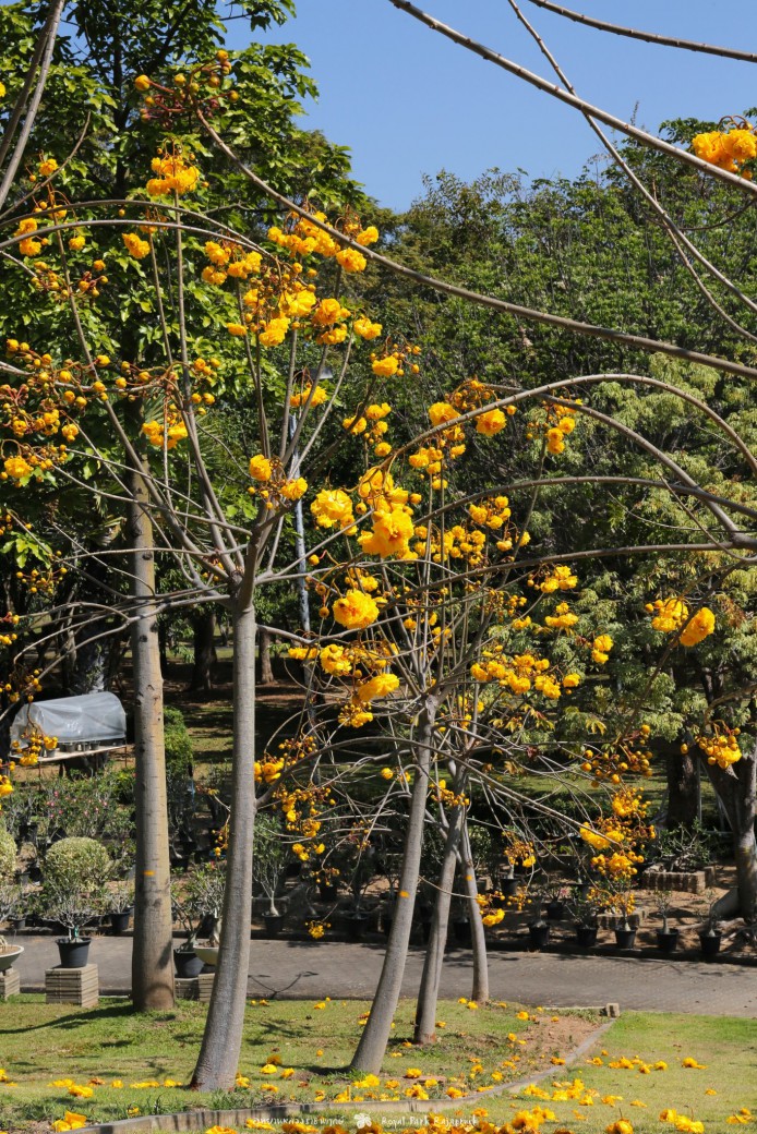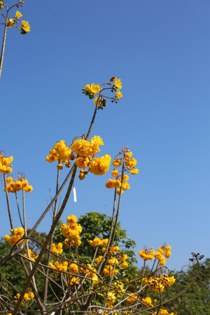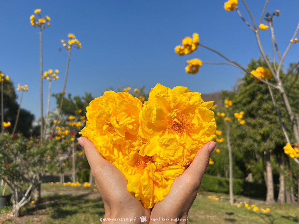 ดอกออกเป็นกระจุกสีเหลืองสดใส มีทั้งดอกที่บานอยู่บนต้น และดอกที่ร่วงหล่นตามพื้น เป็นอีกพิกัดที่ห้ามพลาดชม แวะมาถ่ายรูปสวยๆ กันเลย
