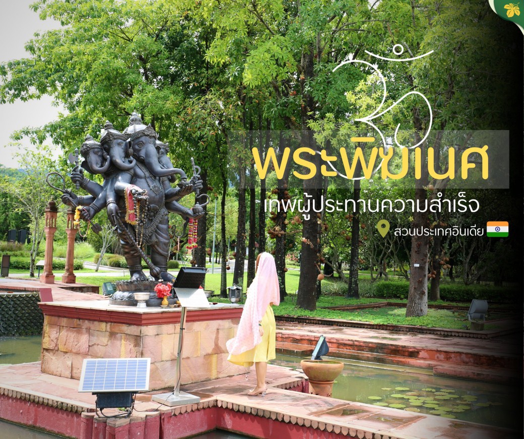 สำหรับใครที่แวะมาเที่ยวชมอุทยานหลวงราชพฤกษ์ จ.เชียงใหม่ ก็ห้ามพลาดแวะสักการะ “องค์พระพิฆเณศปางปัญจมุข” ที่สวนนานาชาติประเทสอินเดีย เป็นเทพเจ้าแห่งความรู้ เป็นผู้มีปัญญาเลิศ ปราดเปรื่องในศิลปวิทยาทุกแขนง ขจัดอุปสรรคทั้งปวง กิจการทุกอย่างสำเร็จลุล่วงไปด้วยดี นอกจากนี้ ยังได้ชมความงามของสถาปัตยกรรมอินเดีย การจัดสวนแบบเทวาลัย ตกแต่งด้วยหินทรายสีชมพู มีมุมถ่ายรูปสวยๆ ใกล้ชิดธรรมชาติ สัมผัสมนต์เสน่ห์แห่งวัฒนธรรม และมีต้นศรีมหาโพธิ์ที่นำมาจากพุทธคยา ประเทศอินเดีย เป็นต้นเดียวกับที่สมเด็จพระสัมมาสัมพุทธเจ้าประทับก่อนตรัสรู้อริยะสัจสี่ และต้นสาละลังกา ดอกสวยส่งกลิ่นหอมไปทั่ว หากเห็นดอกสาละลังการ่วงหล่นบนพื้น ก็สามารถนำมาสักการะ “พระพิฆเณศ” และ “องค์พระแม่ลักษมี” เทพเทวีแห่งความงดงาม รวมทั้ง “องค์พระสุรัสวดี” เทพแห่งปัญญา เพื่อความเป็นสิริมงคลแก่ชีวิตได้อีกด้วย