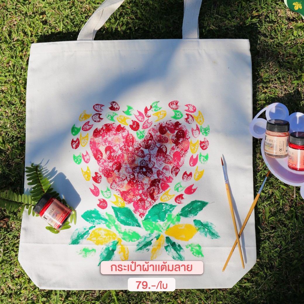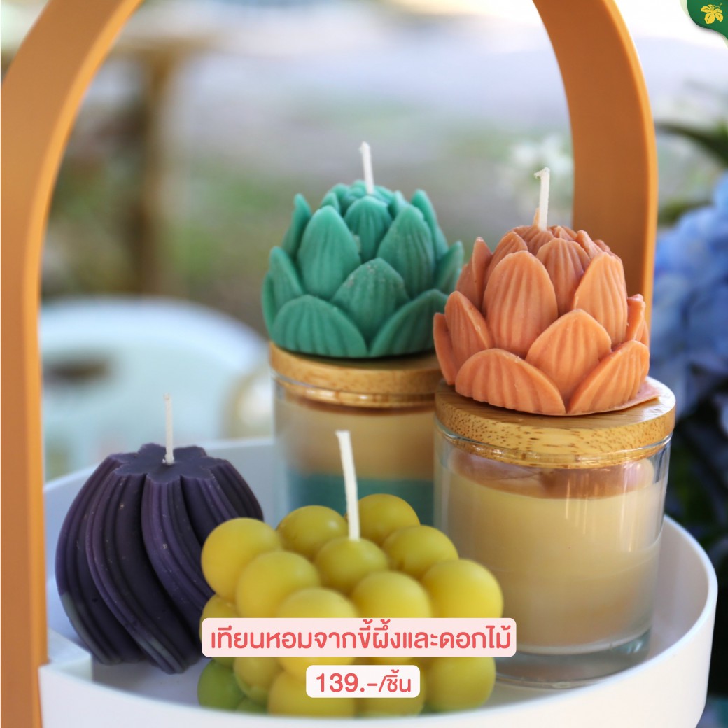 เทียนหอมจากขี้ผึ้งและดอกไม้ กระเป๋าผ้าแต้มลายดอกไม้ ฯลฯ ณ ลานส้มสุก