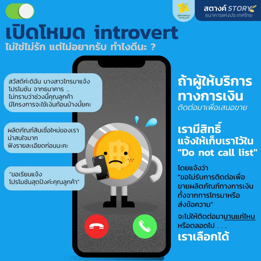 ถ้าหากต้องเจอการเสนอขายผลิตภัณฑ์ทางการเงินที่รบกวนความเป็นส่วนตัว ทั้งแบบเจอหน้า โทรมา หรือส่ง SMS สามารถแจ้ง "ไม่ให้ติดต่อ" และขอให้ "ระบุชื่อในรายชื่อผู้ห้ามติดต่อ (do not call list)" ได้ ทั้งชั่วคราวและตลอดไป หากไม่ได้รับความสะดวกสามารถติดต่อปรึกษาได้ที่ ธนาคารแห่งประเทศไทย โทร. 1213