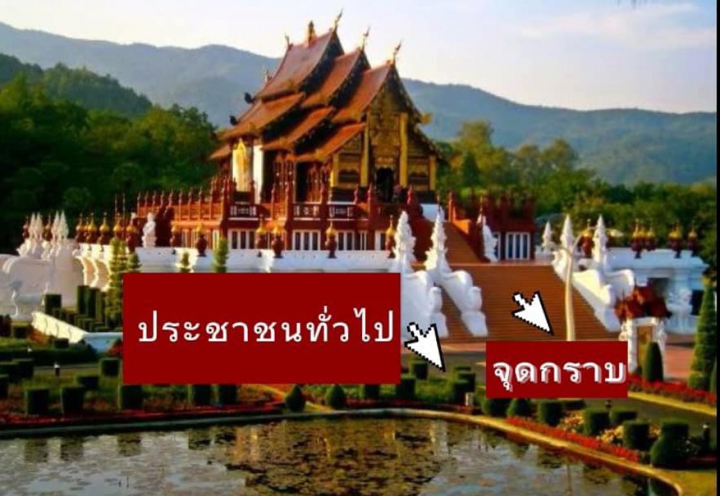 - การเดินขึ้นไปสักการะพระบรมสารีริกธาตุ เจ้าหน้าที่จะให้ขึ้นไปบนชานพักที่ 1 ของหอคำหลวง ไหว้ 1 ครั้ง โดยไม่ต้องกราบ
