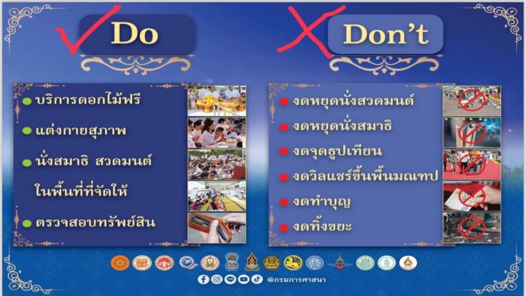 (*) งดเว้นเสื้อแขนกุด เสื้อสายเดี่ยว และกระโปรงสั้นเหนือเข่า และกางเกงขาสั้น