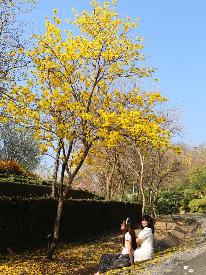 ❀ เหลืองอินเดีย : บริเวณตรงข้ามเรือนร่มไม้ (ดอกบาน : ปลายเดือนกุมภาพันธ์ – ต้นเดือนมีนาคม)
