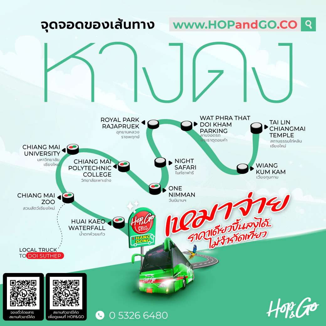 ☎ สอบถามรายละเอียดเส้นทางและการให้บริการเพิ่มเติมได้ที่ โทร.053-266-480 หรือ WWW.HOPandGO.CO