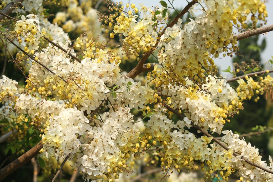 ช่วงนี้ดอกคูนหรือดอกราชพฤกษ์สีเหลืองสดใส เริ่มผลิบานสะพรั่งให้ชมกันได้ทั่วเชียงใหม่แล้ว เป็นสีสันพรรณไม้และฤดูกาลของดอกไม้บาน แต่หากใครอยากจะเห็น “ดอกคูนสีขาว”