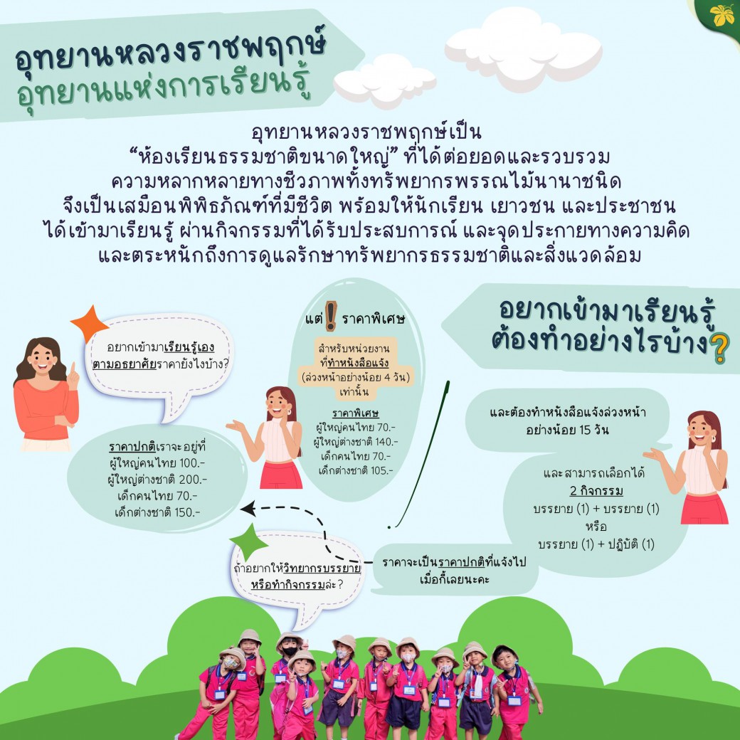 กิจกรรมการเรียนรู้ สำหรับสถาบันการศึกษา หน่วยงาน / องค์กรภาครัฐและเอกชนหรือบริษัทเข้าเยี่ยมชมศึกษาดูงาน เรียนรู้ในอุทยานหลวงราชพฤกษ์ โดยสามารถศึกษารายละเอียดกิจกรรมการเรียนรู้ ตามลิงค์ด้านล่างนี้