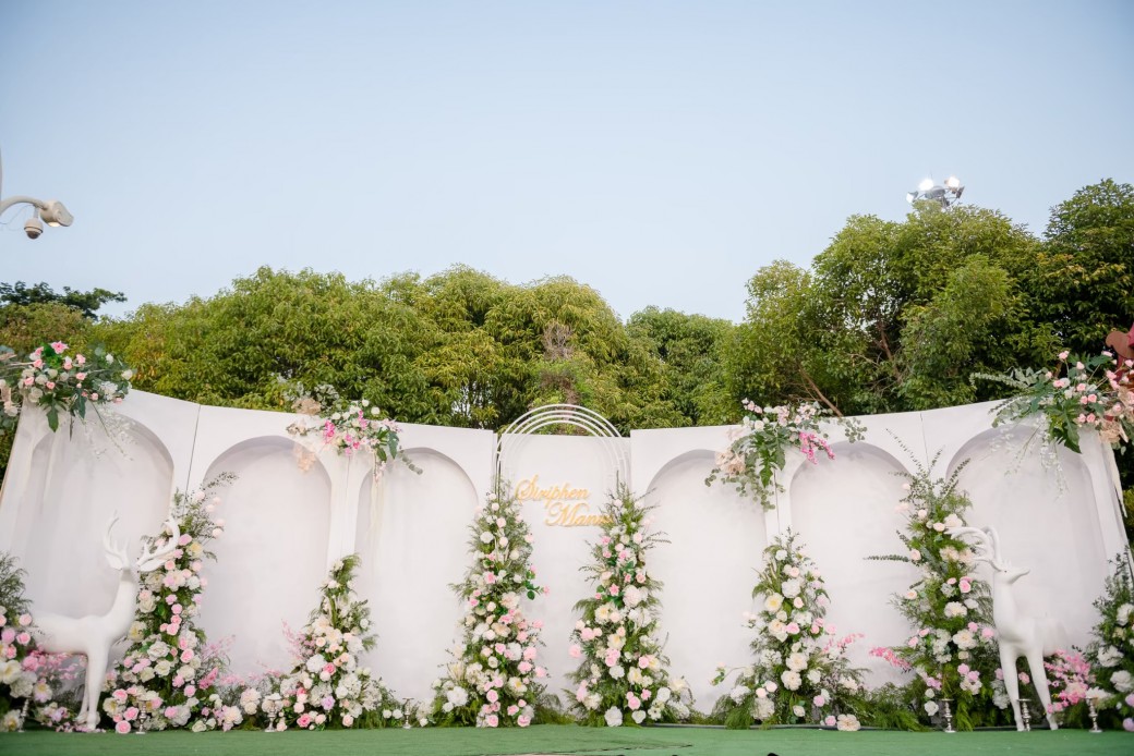 พื้นที่จัดงานร่มรื่น ใกล้ชิดธรรมชาติ พรรณไม้งามบานสะพรั่ง บรรยากาศอบอุ่น โรแมนติก เหมาะสำหรับเป็นสถานที่แห่งความประทับใจ