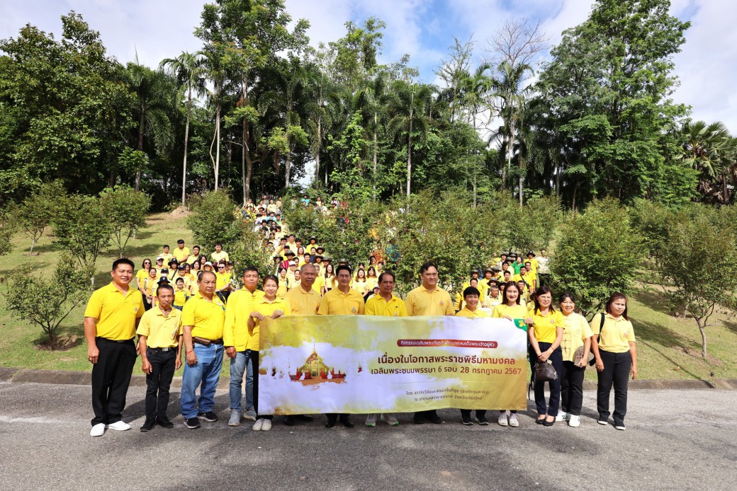 ☆ เมื่อช่วงเช้าของวันที่ 25 กรกฎาคม 2567 สถาบันวิจัยและพัฒนาพื้นที่สูง (องค์การมหาชน) หรือ สวพส. จัดกิจกรรมปลูกต้นไม้เฉลิมพระเกียรติพระบาทสมเด็จพระเจ้าอยู่หัว เนื่องในโอกาสพระราชพิธีมหามงคลเฉลิมพระชนมพรรษา 6 รอบ 72 พรรษา ณ ลานออกกำลังกาย อุทยานหลวงราชพฤกษ์ จังหวัดเชียงใหม่ โดยมีผู้บริหาร เจ้าหน้าที่ และเครือข่ายผู้นำเกษตรกรบนพื้นที่สูงของ สวพส. รวมทั้งหน่วยงานต่างๆ จำนวนกว่า 720 คน ได้ร่วมปลูกต้นไม้จำนวน 72 ชนิด รวม 7,200 ต้น ด้วยพรรณไม้ท้องถิ่นในพื้นที่ สวพส. อาทิ โครงการพัฒนาพื้นที่สูงแบบโครงการหลวงป่าแป๋ โครงการพัฒนาพื้นที่สูงแบบโครงการหลวงปางมะโอ โครงการพัฒนาพื้นที่สูงแบบโครงการหลวงปางแดงใน และโครงการพัฒนาพื้นที่สูงแบบโครงการหลวงในพื้นที่อื่นๆ กว่า 30 พื้นที่ ไม่ว่าจะเป็น พะยอม มะค่าโม่ง ประดู่ป่า พะยูง อินทนิลน้ำ สัก หว้า ยางนา ขี้เหล็ก ยมหิน มะไฟ เหลืองเชียงราย สมอไทย ฯลฯ โดยปลูกตามลักษณะโครงสร้างป่าธรรมชาติเพื่อส่งเสริมให้เกิดความสมดุลทางระบบนิเวศ ช่วยในการอนุรักษ์ ฟื้นฟูทรัพยากร และความหลากหลายทางชีวภาพให้กลับมาเป็นป่าชุมชนที่อุดมสมบูรณ์ อีกทั้งยังเพิ่มพื้นที่สีเขียวและแหล่งกักเก็บคาร์บอนของต้นไม้ภายในอุทยานหลวงราชพฤกษ์ เพื่อเป็นองค์กรที่มุ่งสู่ความเป็นกลางทางคาร์บอน (Carbon neutrality) ในปี พ.ศ. 2570 และร่วมเป็นส่วนหนึ่งในเป้าหมาย Net zero emissions ของประเทศไทยในอนาคตต่อไป