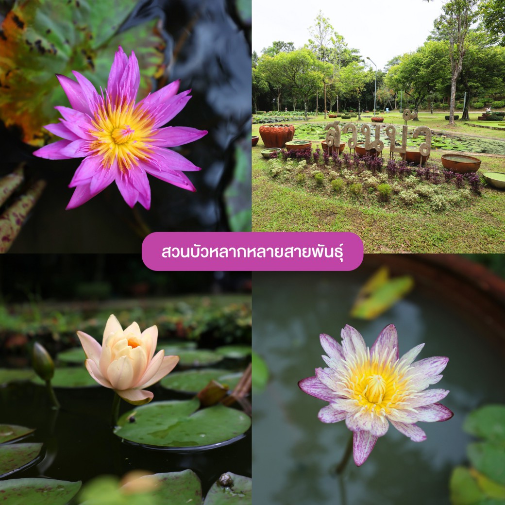✿สวนบัว : ดอกบัวหลากหลายสายพันธุ์เริ่มออกดอกชูช่อรับสายฝน สง่างามอยู่เหนือผิวน้ำ สีสันสวยสดใส
