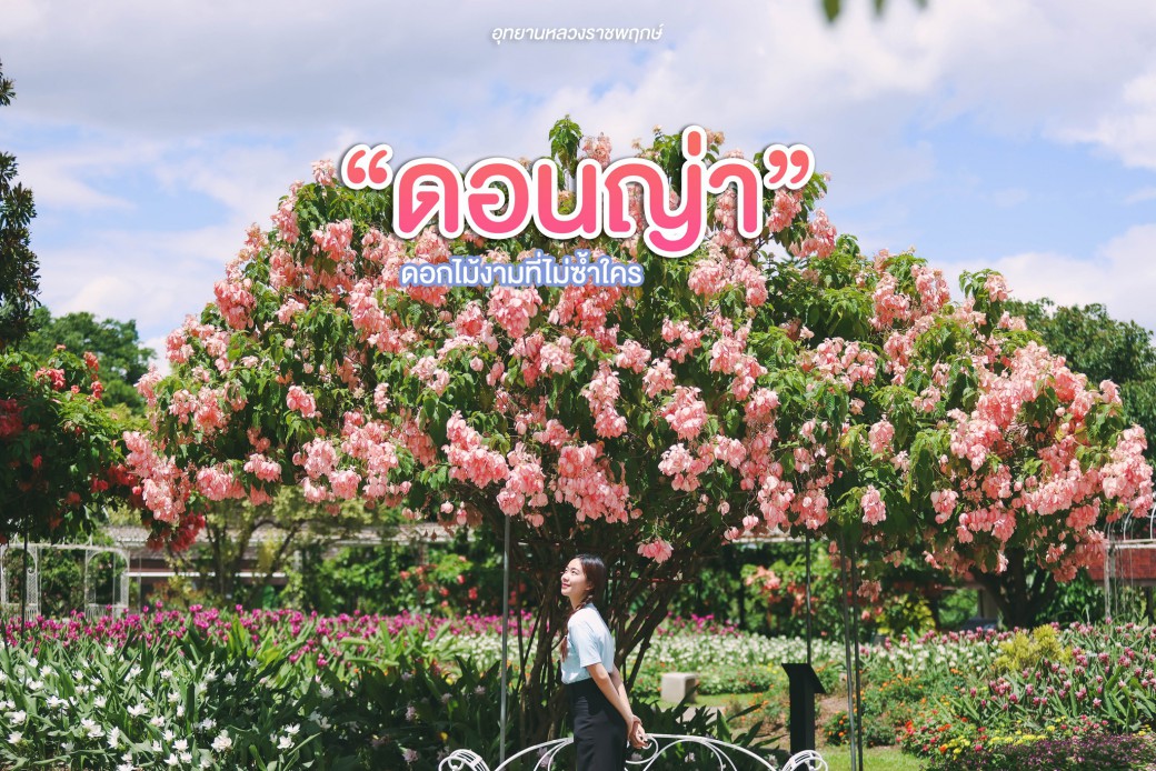 ❀ ลักษณะพิเศษของ ‘ดอนญ่า’ นั้น ดอกดกเป็นพุ่มเป็นช่อเต็มต้นสวยงามตลอดทั้งปี และที่ในอุทยานหลวงราชพฤกษ์ได้รวบรวมจัดแสดงไว้หลากหลายสายพันธุ์ ทั้งดอนญ่าควีนสิริกิติ์ (สีชมพูอ่อน) ดอนญ่าลูซ (ชมพูอมส้มเข้ม) ดอนญ่าขาวหรือดอนญ่าออโรร่า (สีขาว) และ ดอนญ่าแดง ที่กำลังบานสะพรั่งสวยงามเต็มต้นให้นักท่องเที่ยวได้ชื่นชมความสวยงามในช่วงนี้