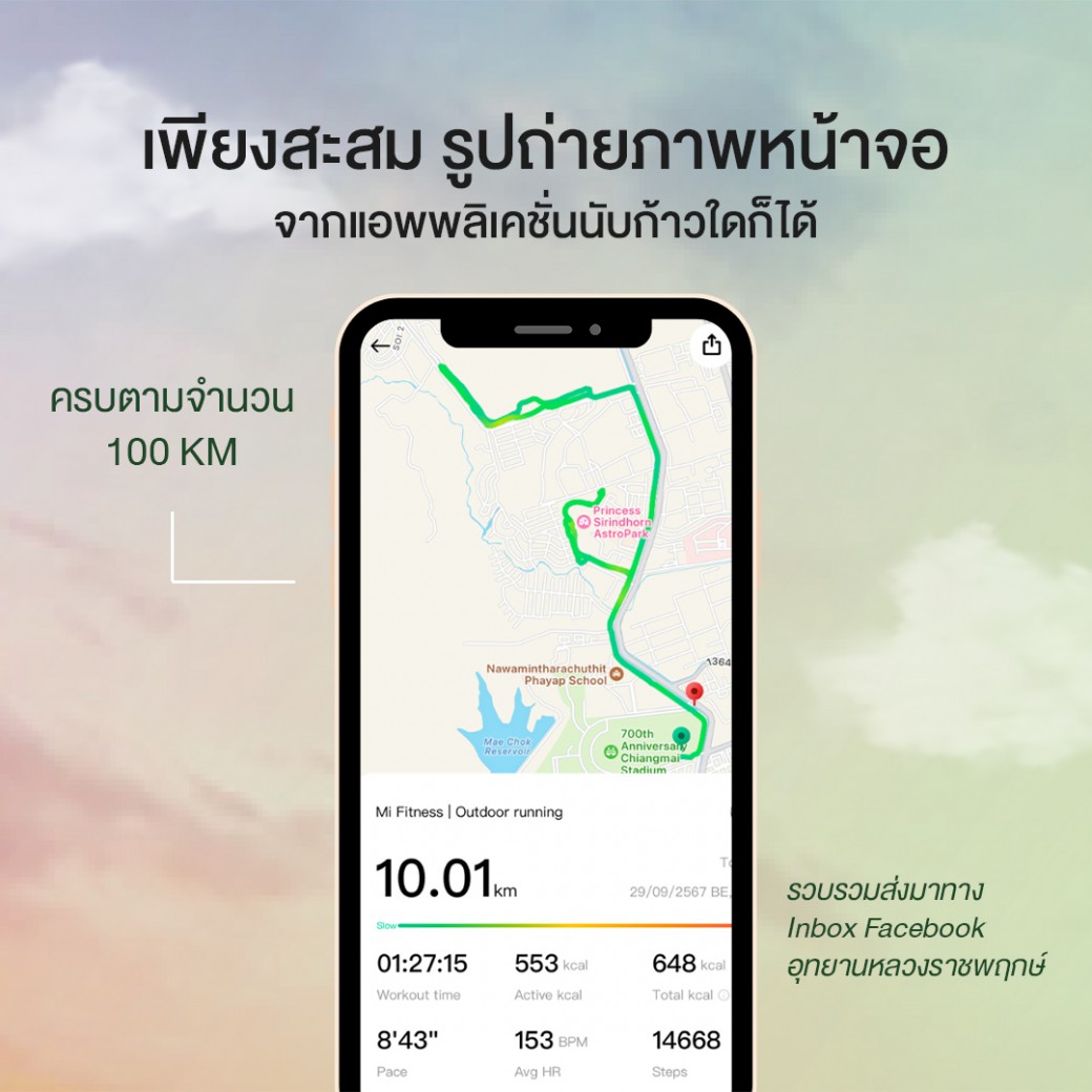 ☄ ขอเชิญชวนทุกท่านสายรักสุขภาพ เข้าร่วมกิจกรรม "วิ่งเก็บสะสมระยะทาง" วิ่งได้ทุกที่ ทุกเวลา! เพียงวิ่งสะสมครบ 100 กิโลเมตร แล้วถ่ายภาพหน้าจอจากแอปพลิเคชันนับก้าวใดก็ได้ รวบรวมและส่งรูปมายังเพจ อุทยานหลวงราชพฤกษ์ เท่านี้ก็ลุ้นรางวัลมากมาย อาทิ เหรียญรักษ์โลก และ ของที่ระลึกสุดพิเศษอีกมากมาย มาร่วมวิ่งเพื่อสุขภาพที่ดี และช่วยลดคาร์บอนไปด้วยกัน! ☺