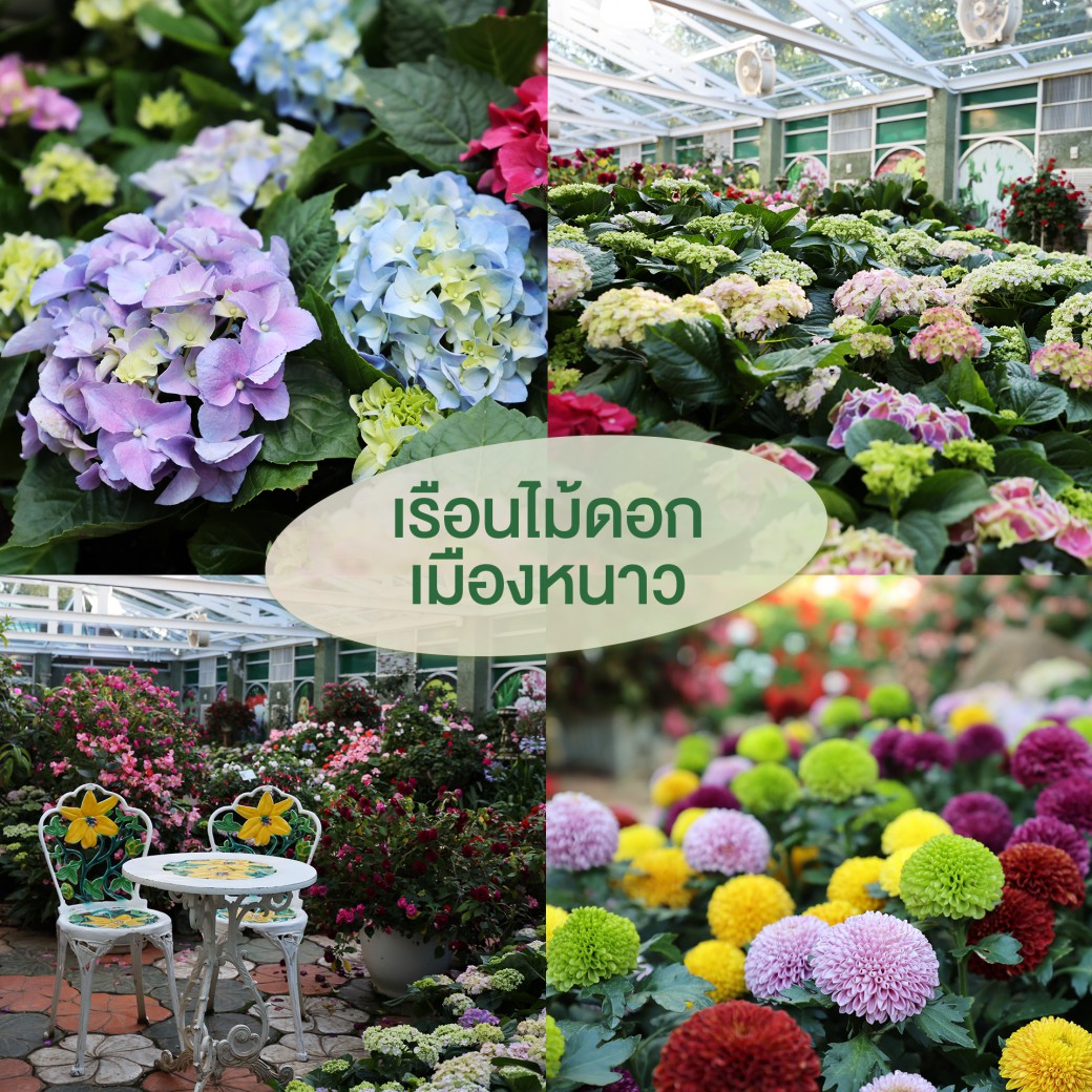 ➤ เรือนไม้ดอก : ชมไม้ดอกเมืองหนาว ดอกไฮเดรนเยีย ในบรรยากาศเย็นสบายให้ความรู้สึกสดชื่น เหมือนอยู่ในสวนดอกไม้ตลอดทั้งปี