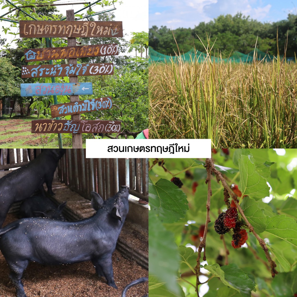 เรียนรู้การทำการเกษตรทฤษฎีใหม่ ตามหลักปรัชญาของเศรษฐกิจพอเพียง สนุกกับพืชพรรณที่มีความสำคัญในการดำรงชีวิต อาทิ ข้าว พืชผัก สมุนไพร ไม้ผล และรู้จักสัตว์เลี้ยงที่เป็นประโยชน์ ชมได้ทั้งวัน