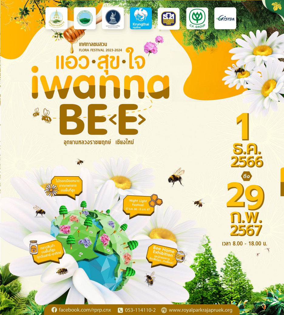 เริ่มเแล้ว "เทศกาลชมสวน 2566 “แอ่วสุขใจ..I wanna be (e)” ชมสีสันแห่งไม้ดอกเมืองหนาว งดงามวัฒนธรรมเมืองเหนือ เที่ยวรักษ์สิ่งแวดล้อมอย่างยั่งยืน เที่ยวสุข โดยมี “ผึ้ง หรือ Bee” นักผสมเกสรเป็น Mascot นำทางนักท่องเที่ยวชมสวนดอกไม้ที่สวยงาม อุดมสมบูรณ์ พรรณไม้นานาชนิด