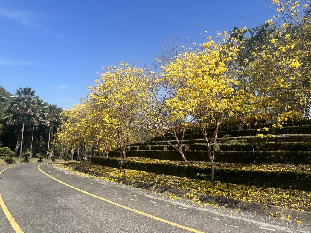 ใครพลาดชมครั้งนี้..รออีกทีปีหน้าเลยนะกับความสะพรั่งของ “ดอกเหลืองอินเดีย” ✿ ที่พร้อมจะผลิบานเรียงรายสวยงามให้นักท่องเที่ยวได้ชมอีกครั้ง ในช่วงระหว่างวันที่ 16-20 มีนาคม 2568 บอกเลยว่าต้องรีบมานะ เพราะเจ้าดอกเหลืองอินเดียนั้น หากดอกตูมเริ่มบานจะพากันทยอยบานเร็วมาก และถ้าดอกบานเต็มต้นแล้วดอกจะบานนานประมาณ 1-3 วันเอง (ทั้งนี้ ขึ้นกับสภาพอากาศ เนื่องจากน้องบอบบางมาก ถ้าเจอลม เจอฝน น้องก็จะร่วงโรยเร็วกว่าปกติ) จากนั้นดอกก็จะร่วงหล่นลงพื้นจนหมดต้นเหมือนปูพรมสีเหลืองสวยงามไปอีกแบบ