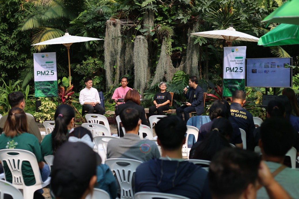 ▶เมื่อวันที่ 1 เมษายน 2568 ได้มีการจัด งานเสวนาวิชาการ ในหัวข้อ "ร่วมคิด ร่วมแก้ วิกฤตฝุ่น PM2.5" ณ เรือนร่มไม้ อุทยานหลวงราชพฤกษ์ จังหวัดเชียงใหม่ โดยมีผู้ทรงคุณวุฒิจากหลากหลายสาขามาร่วม แลกเปลี่ยนองค์ความรู้ และ นำเสนอแนวทางการแก้ไขปัญหาฝุ่นละอองขนาดเล็ก PM2.5 ซึ่งเป็นประเด็นด้านสิ่งแวดล้อมและสาธารณสุขที่ส่งผลกระทบอย่างกว้างขวาง