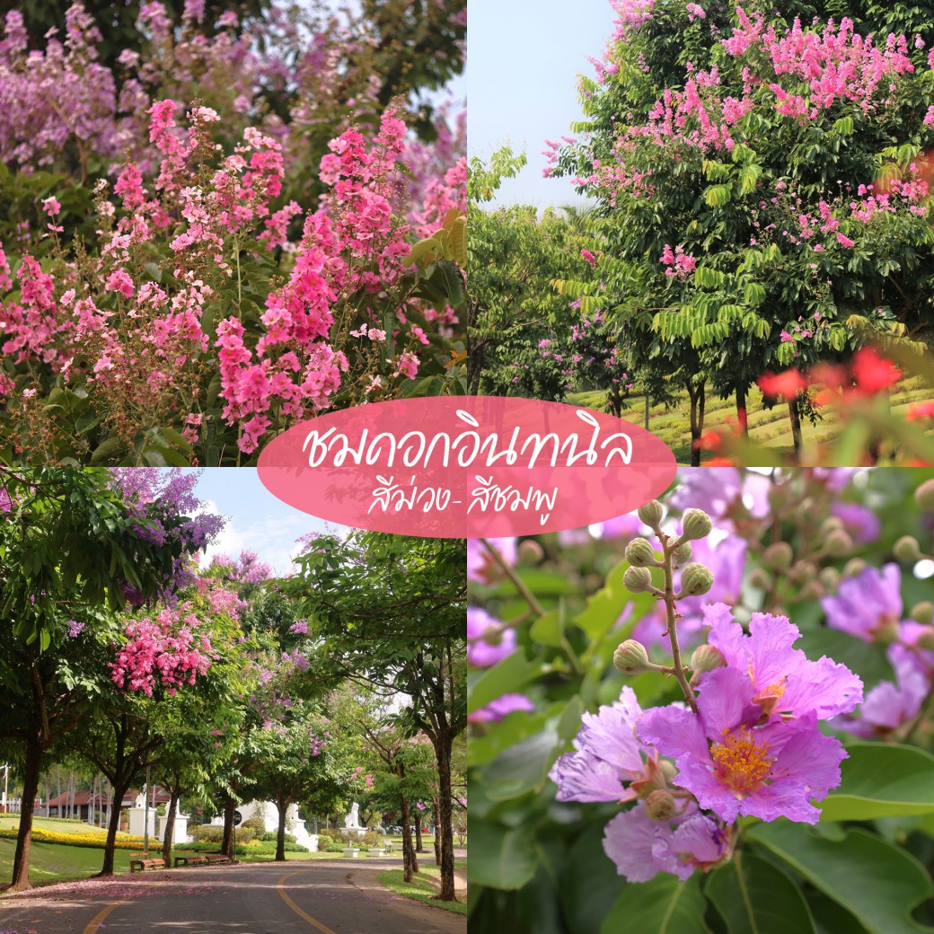 อินทนิลบานสะพรั่ง — อวดโฉมด้วยสีม่วง-ชมพู บานเต็มสองข้างทาง ตั้งแต่หน้าสวนประเทศภูฏาน ไปจนถึงสวนประเทศเนเธอร์แลนด์ สวยละมุนชวนให้หยุดถ่ายรูปทุกก้าวเดิน