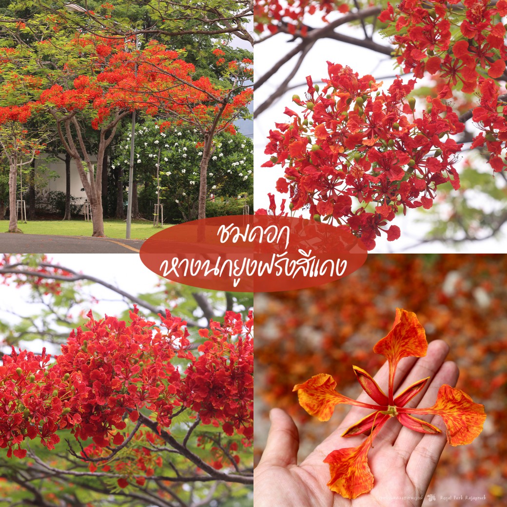 หางนกยูงฝรั่งสีแดง — ความงามแบบจัดจ้านที่ถนนหน้าอาคารโลกแมลงถึงสวนประเทศลาว ให้ฟีลเดินเล่นอยู่เมืองนอก!