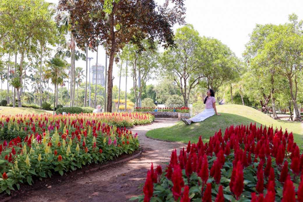 จุดเช็คอินสุดว้าวกลางทุ่งดอกสร้อยไก่ ณ สวนประเทศเนเธอร์แลนด์ อุทยานหลวงราชพฤกษ์