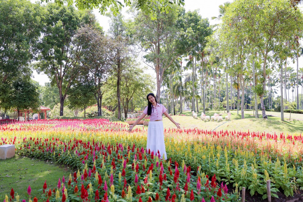 ✧ช่วงนี้ทั้งสวนกำลังถูกแต่งแต้มด้วยสีสันสดใสของดอก "สร้อยไก่" หรือ Celosia ที่กำลังเบ่งบานเต็มที่ ให้คุณได้เดินเล่นเพลินๆ ท่ามกลางกังหันยักษ์ ถ่ายรูปสุดฟินกับช่อดอกสีแดง ส้ม เหลือง ชมพู ที่ผลิดอกเรียงรายราวกับเปลวไฟเล็กๆ ไม่ว่าจะมาคนเดียว มาคู่ หรือมาเป็นแก๊ง...แค่พกกล้อง กับพร็อพสุดปัง ก็พร้อมถ่ายรูปสวยๆ ลงโซเชียลได้แบบจุใจ ❤