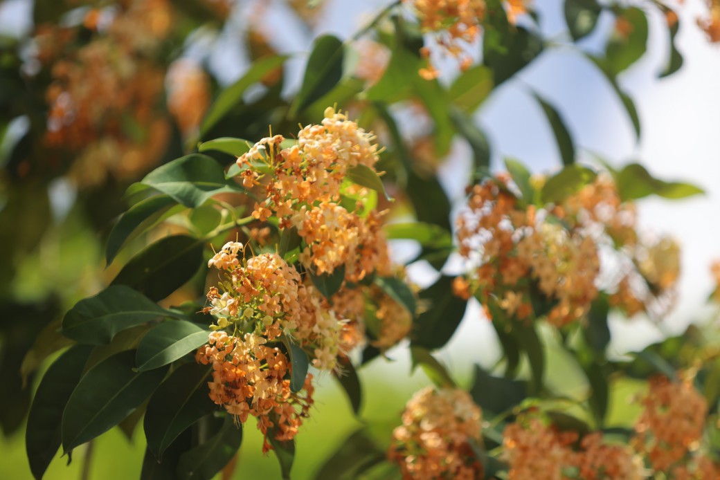 ☺ ในช่วงปลายฤดูร้อนเข้าสู่ต้นฤดูฝนแบบนี้ หนึ่งในไม้ดอกที่โดดเด่นทั้งสีสันและกลิ่นหอมละมุนก็คือ “กันเกรา” (Fagraea fragrans Roxb.) ❀ ดอกสีเหลืองอมแสดสดใส ออกเป็นช่อแน่น สะดุดตาและบานสะพรั่งในช่วง เมษายนถึงมิถุนายน ของทุกปี