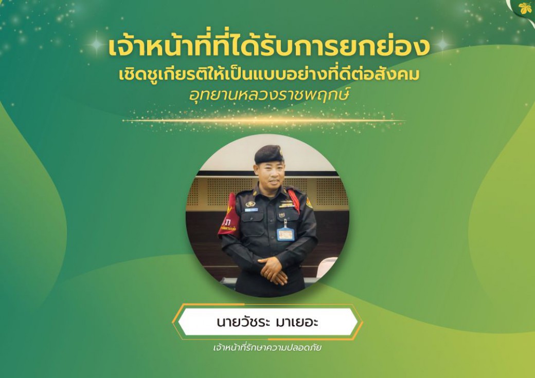 ✦ ขอเชิดชูเกียรติ “นายวัชระ มาเยอะ เจ้าหน้าที่รักษาความปลอดภัย” ที่ได้รับการยกย่องเป็นแบบอย่างที่ดีต่อสังคมของอุทยานหลวงราชพฤกษ์ ซึ่งได้ทำความดีโดยการเก็บกระเป๋าสตางค์ของนักท่องเที่ยวต่างชาติได้และนำมาส่งคืนเจ้าของ ซึ่งเป็นสิ่งที่น่าชื่นชมและแบบอย่างที่ดีของสังคม รวมทั้งเป็นการแสดงให้เห็นถึงคุณธรรมและความซื่อสัตย์ในการทำงาน