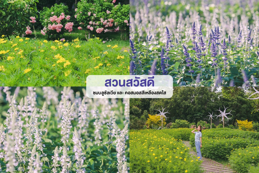 ➤ ชมความงามของทุ่งดอกไม้สีฟ้า ม่วง เหลือง ที่กำลังทยอยผลิบานอย่างละมุน ณ “สวนสวัสดี”