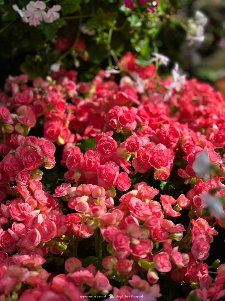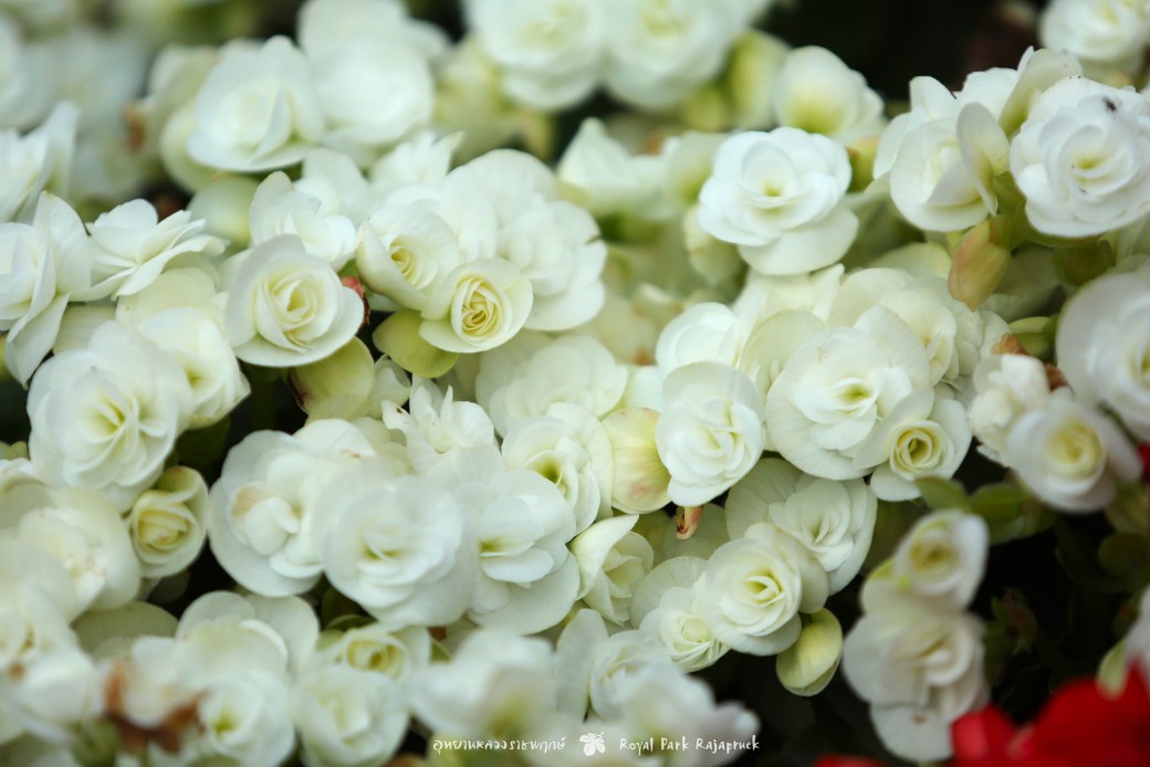 บานสะพรั่ง... บีโกเนียดอกซ้อน ออกดอกสีสันสดใส ทั้งสีแดง สีชมพู สีขาว สีเหลืองส้ม ดอกเล็กๆ น่ารัก มีลักษณะดอกที่คล้ายดอกกุหลาบ แต่ดอกจะซ้อนเป็นช่อตามซอกใบ นิยมปลูกเป็นพืชคลุมดินหรือพืชกระถาง