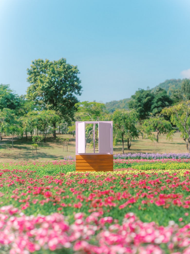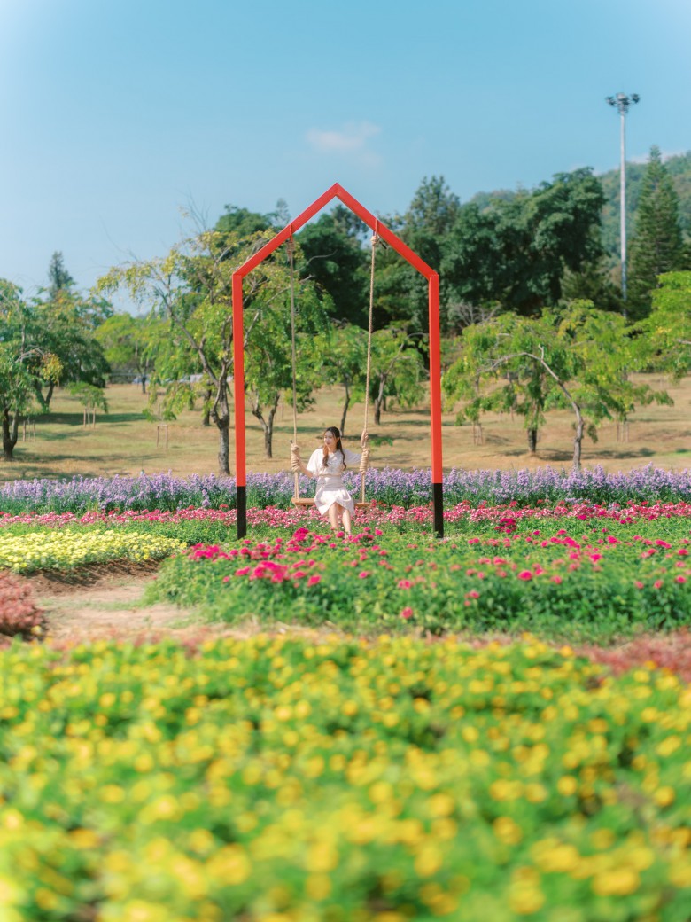 ออกดอกบานสวย สีสันสดใส จัดมุมตกแต่งน่ารักๆ มีชิงช้าให้นั่งเล่น ถ่ายรูปกับมุมหน้าต่าง เก้าอี้ วิวด้านหลังได้ฟิลธรรมชาติสุดๆ